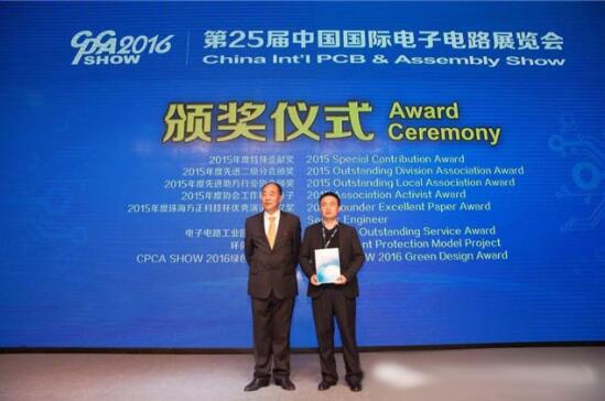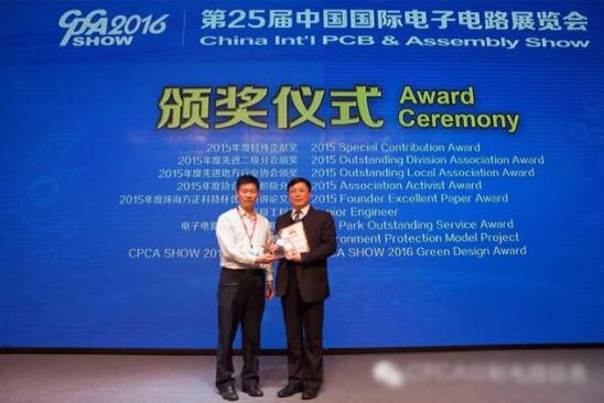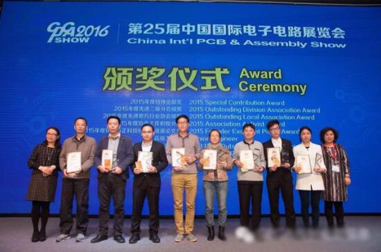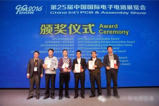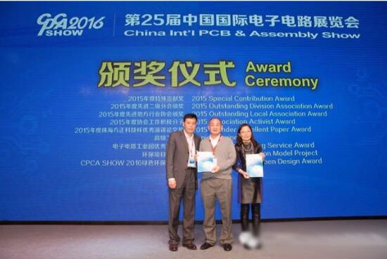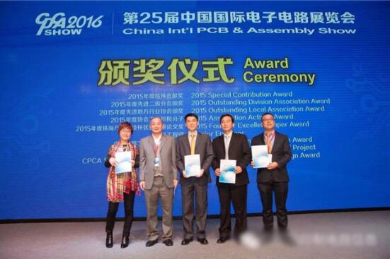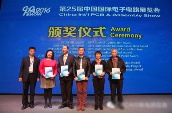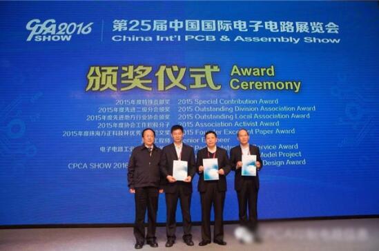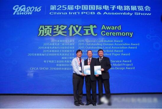 CPCA理事长由镭为2015年度特殊贡献奖获得者胜宏科技、方正科技、正业科技颁奖。