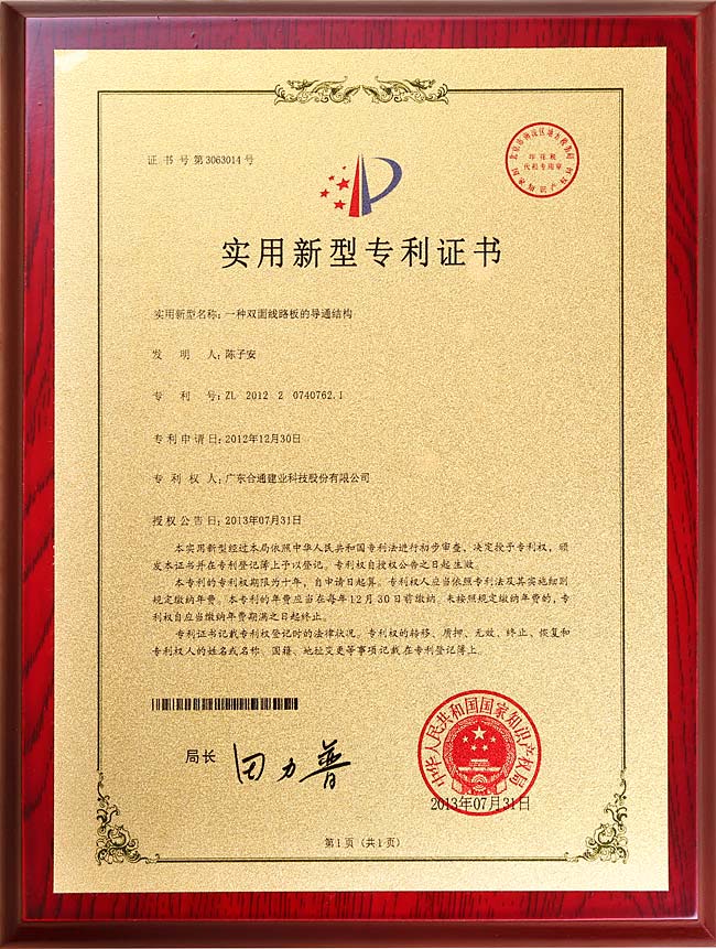 一种双面线路板的导通结构